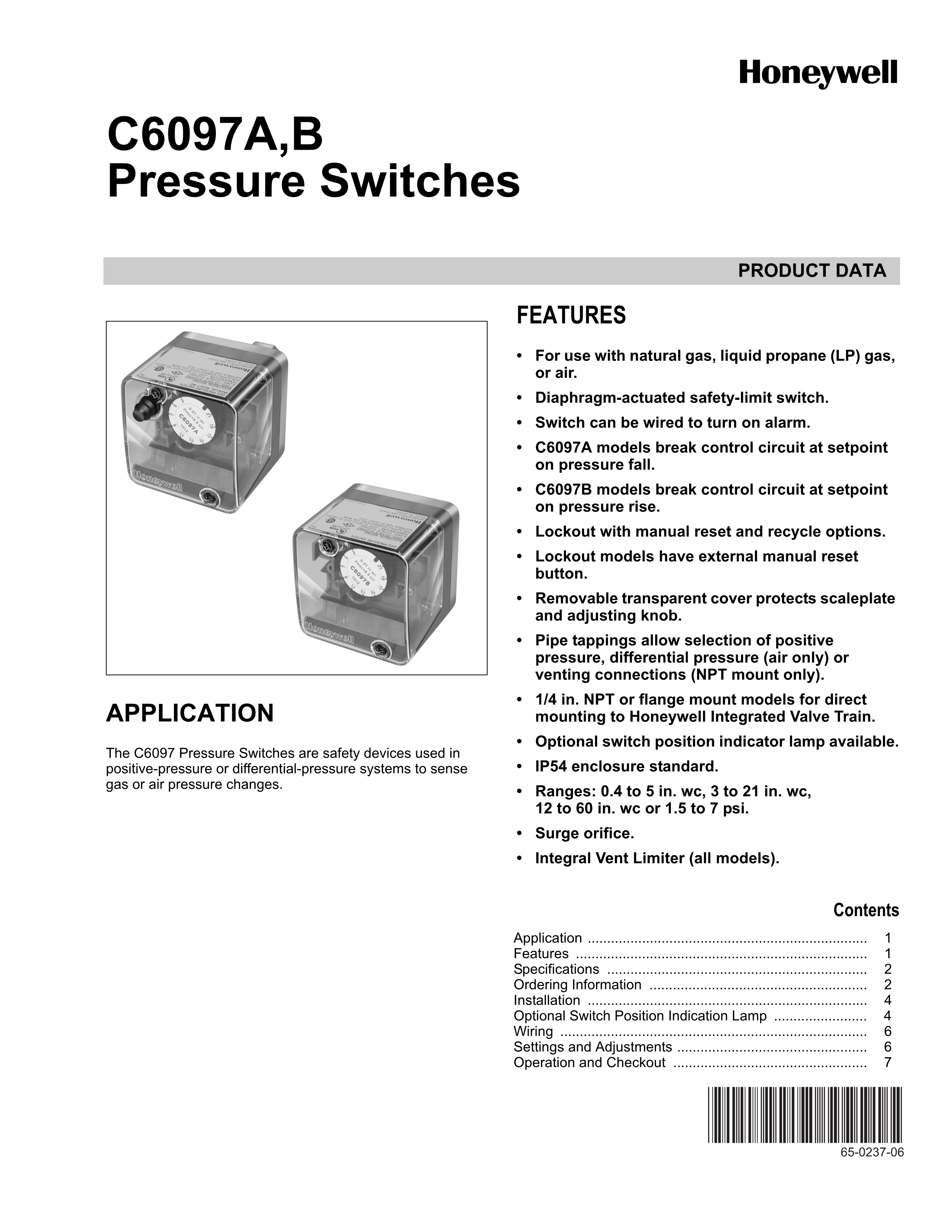 霍尼韋爾C6097A2310風(fēng)壓開關(guān)